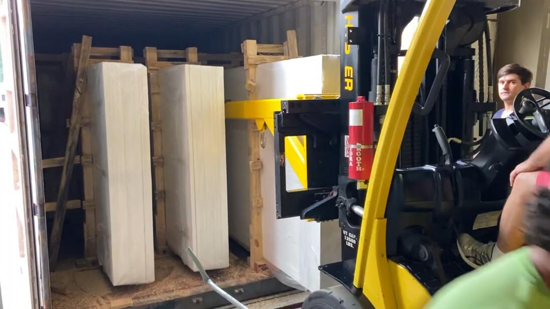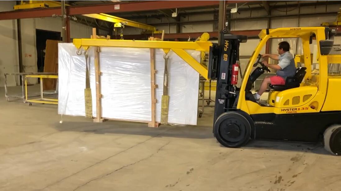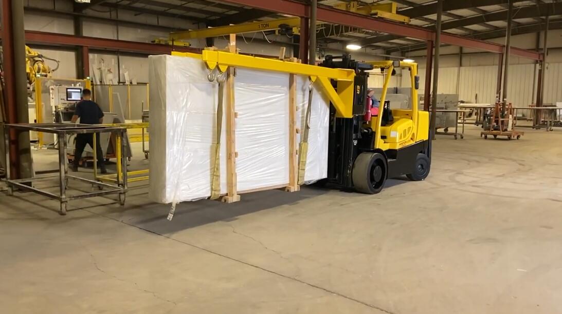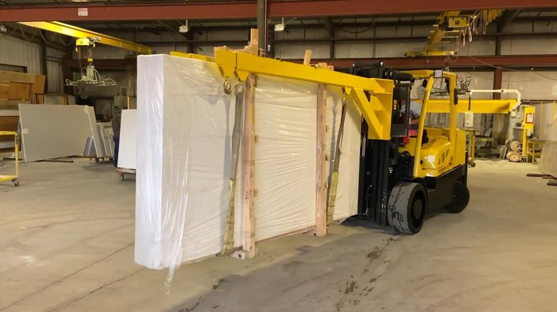 雙叉車吊臂是一種可伸縮的兩段矩形管鋼臂,用于從封閉的集裝箱中移動成束的大理石板和花崗巖板