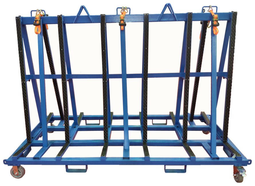 This design is used for the transportation and storage of the plate inside and outside the factory area. The surface of the bracket is covered with a rubber layer to protect the plate scratch.